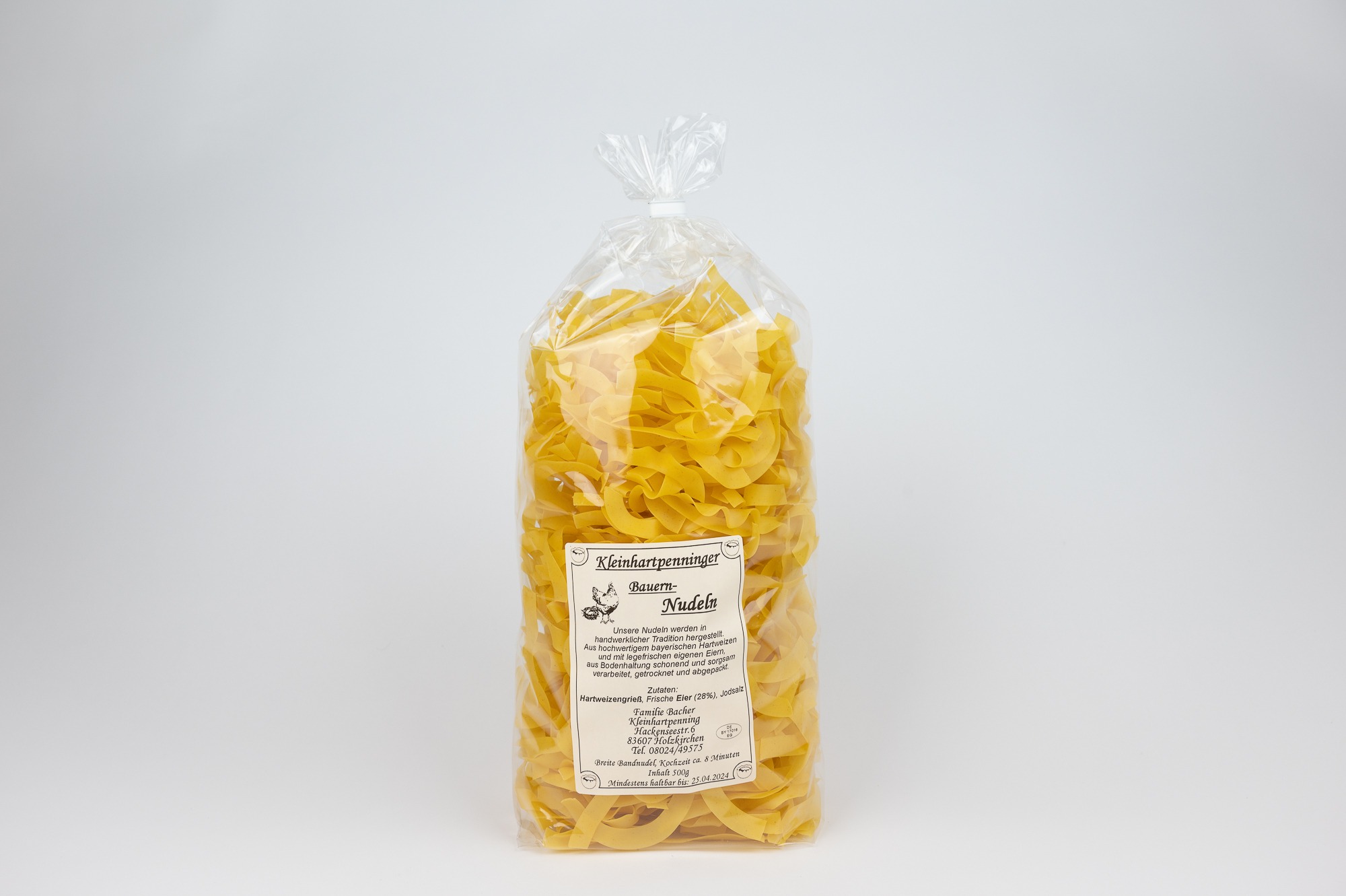 Verwendet werden hochwertiger bayerischer Hartweizen und frische Eier aus eigener Bodenhaltung — für natürlichen Geschmack und beste Qualität.
