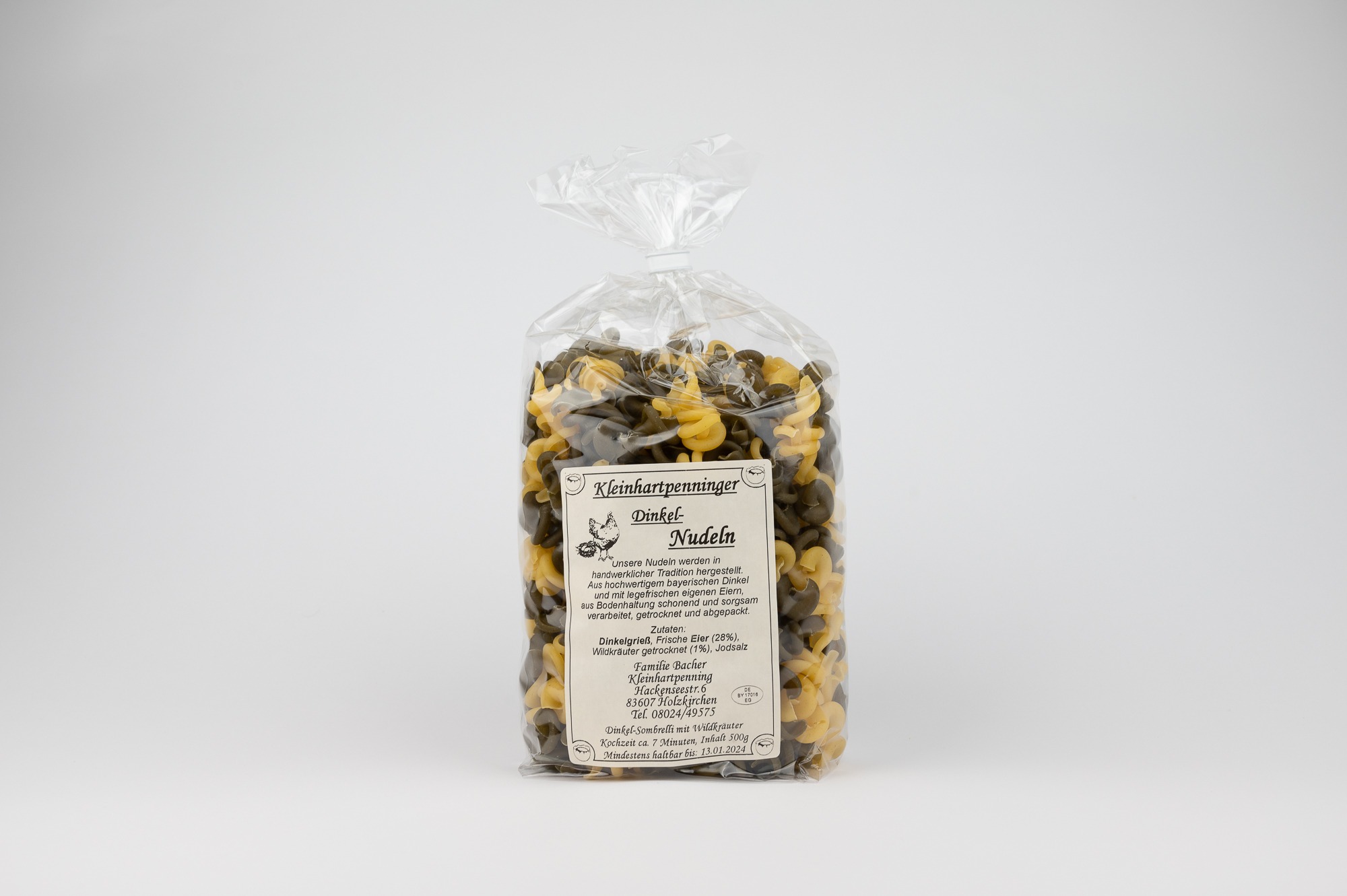 Verwendet werden hochwertiger bayerischer Dinkelgrieß und frische Eier aus eigener Bodenhaltung — für natürlichen Geschmack und beste Qualität.