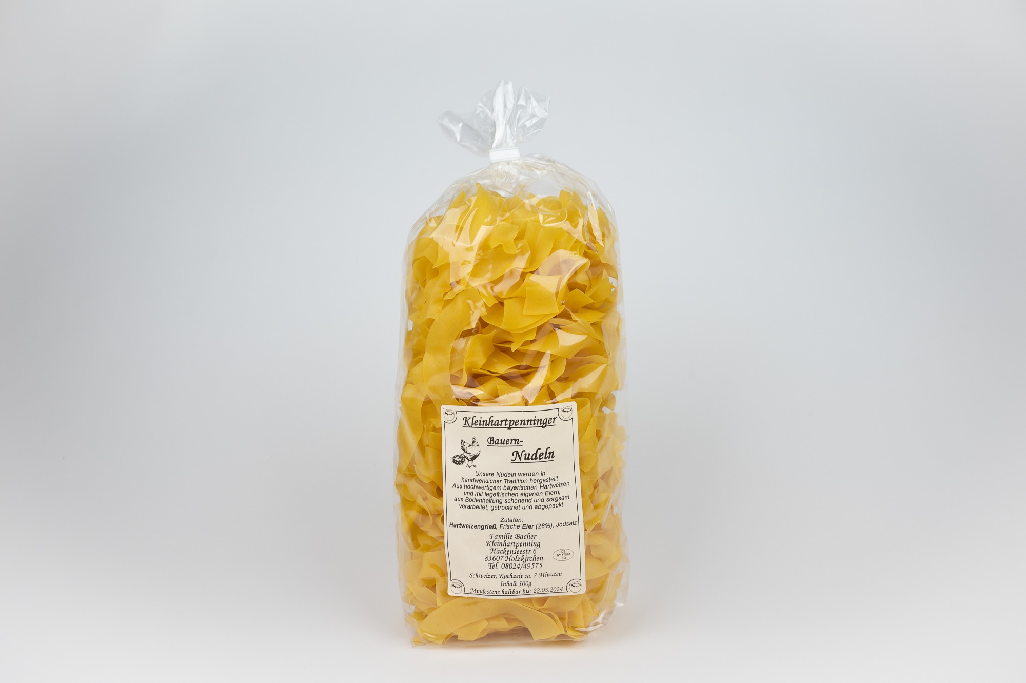 Verwendet werden hochwertiger bayerischer Hartweizen und frische Eier aus eigener Bodenhaltung — für natürlichen Geschmack und beste Qualität.